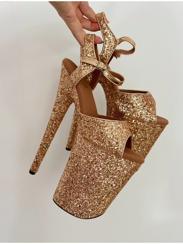Босоніжки четвірки кольору золото повністю покриті гліттером. Зроблять ваш танець неймовірно яскравим.